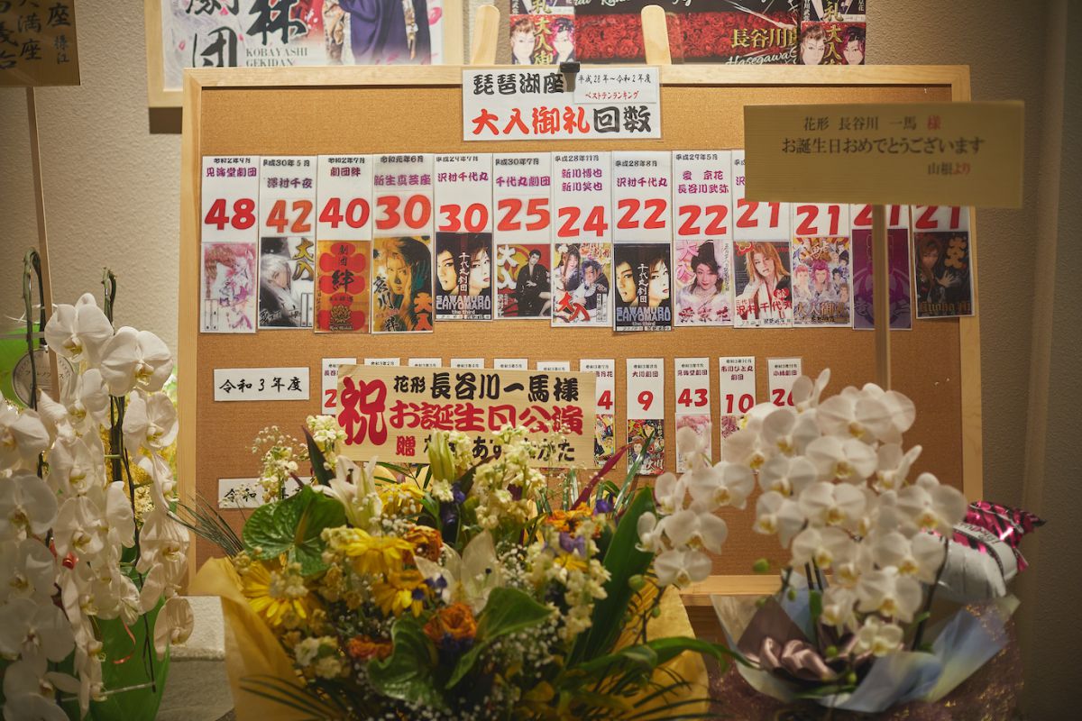 一度見るとハマる人も多くて、推しのスターを追っかけて全国行脚する人もいるという大衆演劇。こちらでも人気がうかがえる大入り御礼回数の札が飾られていました。