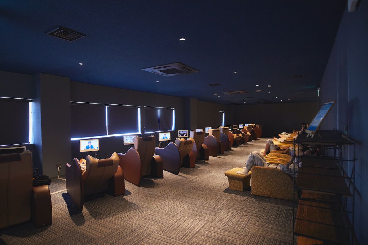 仮眠したい人は同じく3階の「うたたね処」へ。全体的に照明が落としてあり、お風呂から上がってくつろぐのに最適。リクライニングシートで気持ちよくうたた寝しましょう。マッサージチェアもあります。
