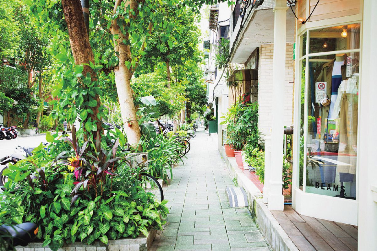 富錦街(フーチンチエ)は松山空港からほど近く、アメリカの街並みをモデルに開発された旧米軍タウン。アジアンな雑踏感や近代的な街並みから一転、緑あふれる街路樹が続く広い通りは西洋ムードに包まれています。