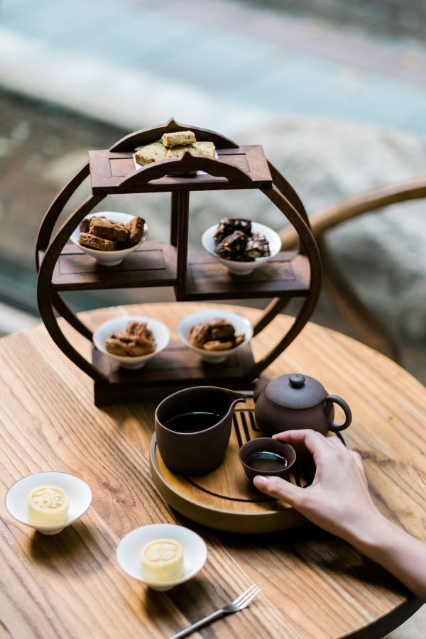 住宅街の路地裏にひっそりと佇む「開門茶堂」。古いアパートの1階をリノベしており、店内に入るとウッディで落ちついた雰囲気に引き込まれます。それもそのはず、ここはインテリアデザイナー3人が始めた茶藝館。道路側のガラス窓から見える街路樹の景色も、なごみのティータイムに一役買ってくれます。