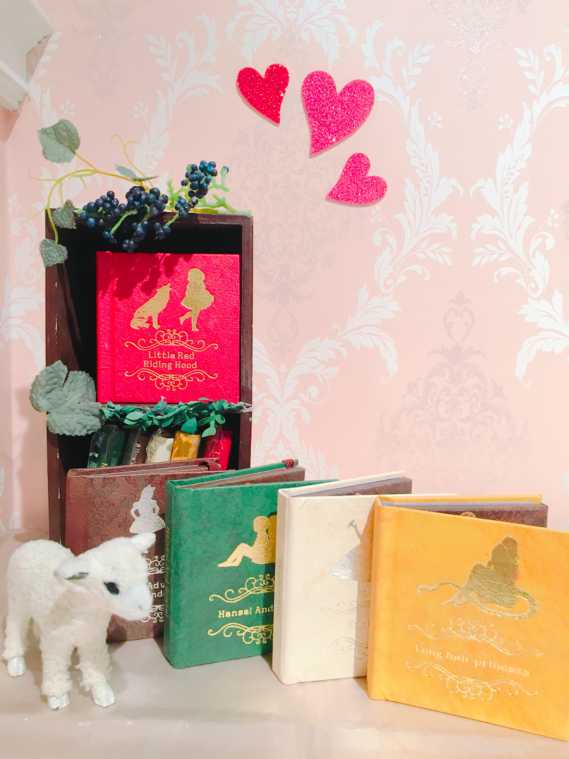 店頭で販売しているグッズもたまらなくかわいい!こちらは豆本型アイシャドウの「童話コスメ」。赤ずきん、不思議の国のアリス、白雪姫など物語の主人公をイメージして作られたカラーパレットです。