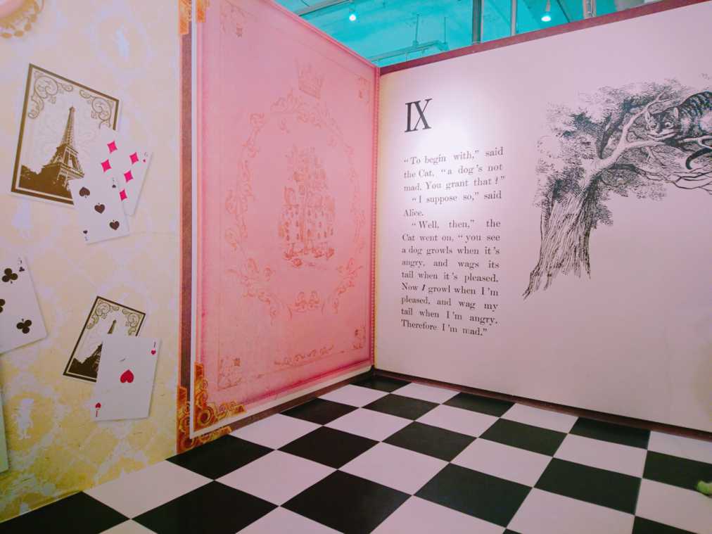 撮影は「不思議の国のアリス」に登場するチェシャ猫が描かれた、かわいすぎるスタジオで。角に立つとまるで絵本の中にいるかのように写すことができます。どの角度で撮ってもメルヘンな画になること間違いなし!