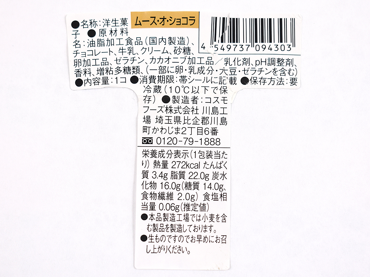 カカオ73%と55%の2種類のチョコを使った、味わいも食感も濃厚なムース(ローソン)