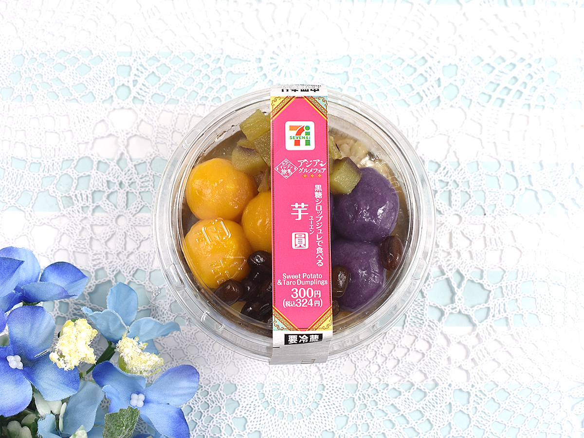 さまざまなジャンルのスイーツが並ぶコンビニには、世界各国のスイーツを再現した本格的な商品も。今回注目したのは、セブン-イレブンで販売されている「黒糖シロップジュレで食べる芋圓(ユーエン)」(324円)。芋圓とは馴染みのないスイーツですが、どのような味わいを楽しめるのか、世界を旅している気分で味わっていきます!