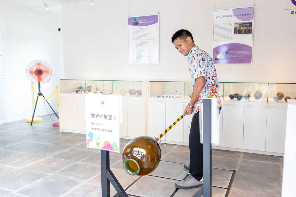 「ガラスの自由研究室」は琉球ガラスの製造技法が学べる施設です。パネルや動画で解説してくれるため子どもでも分かりやすいと評判。また、ガラス瓶が装着された吹き竿を持ちその重量を体感するコーナーなど、実際に触れることでガラス製作の奥深さを学ぶことができます。