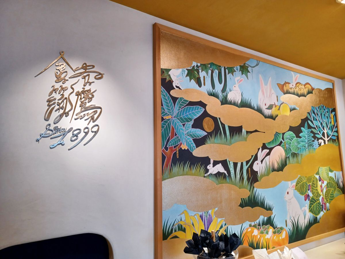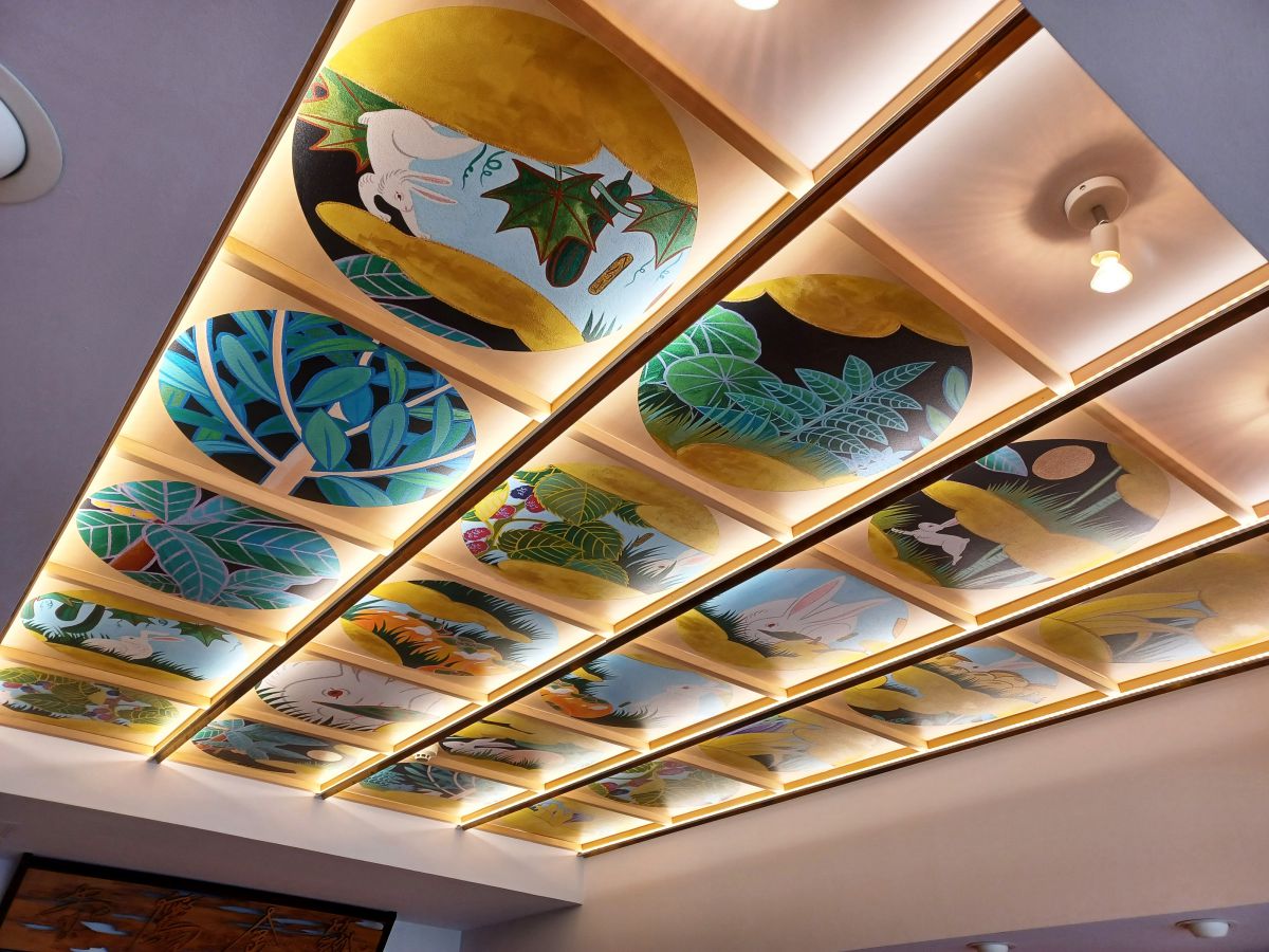 こちらの壁画には、「MAKANAI」のトレードマークであるうさぎと、独自美容成分「KaESS(カエス)※」の素材ある「柿の葉」「卵殻膜」「大豆」が描かれています。なんと本物の金箔が使われているんだとか…!