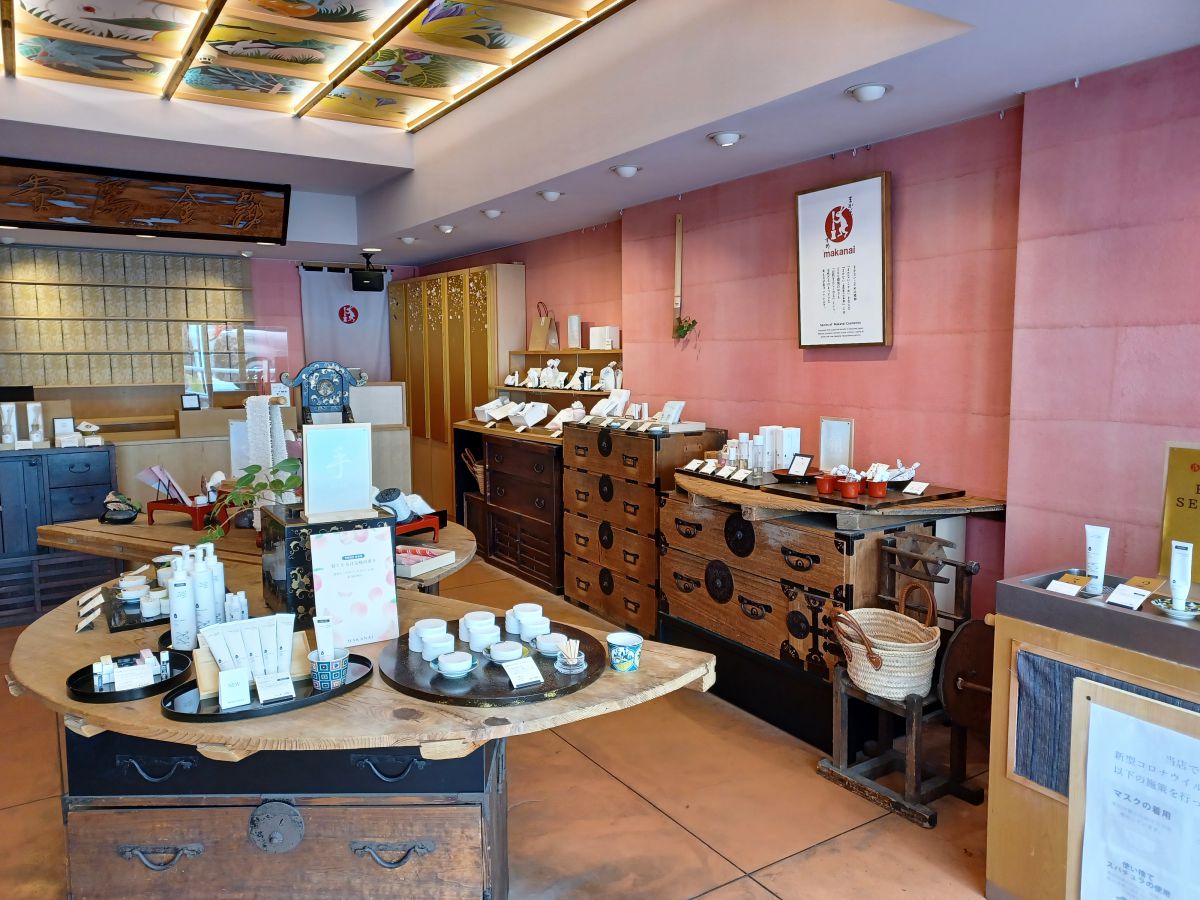 「金箔」を使ったコスメを取り扱う「MAKANAI(まかない)」。神楽坂本店では、ブランドの象徴である金箔コスメのほかに、スキンケアクオリティのボディケアアイテムやヘアケアアイテムなど、さまざまな商品に出合えるんです! ブランドの世界観を体感できる店内のデザインにも注目です!