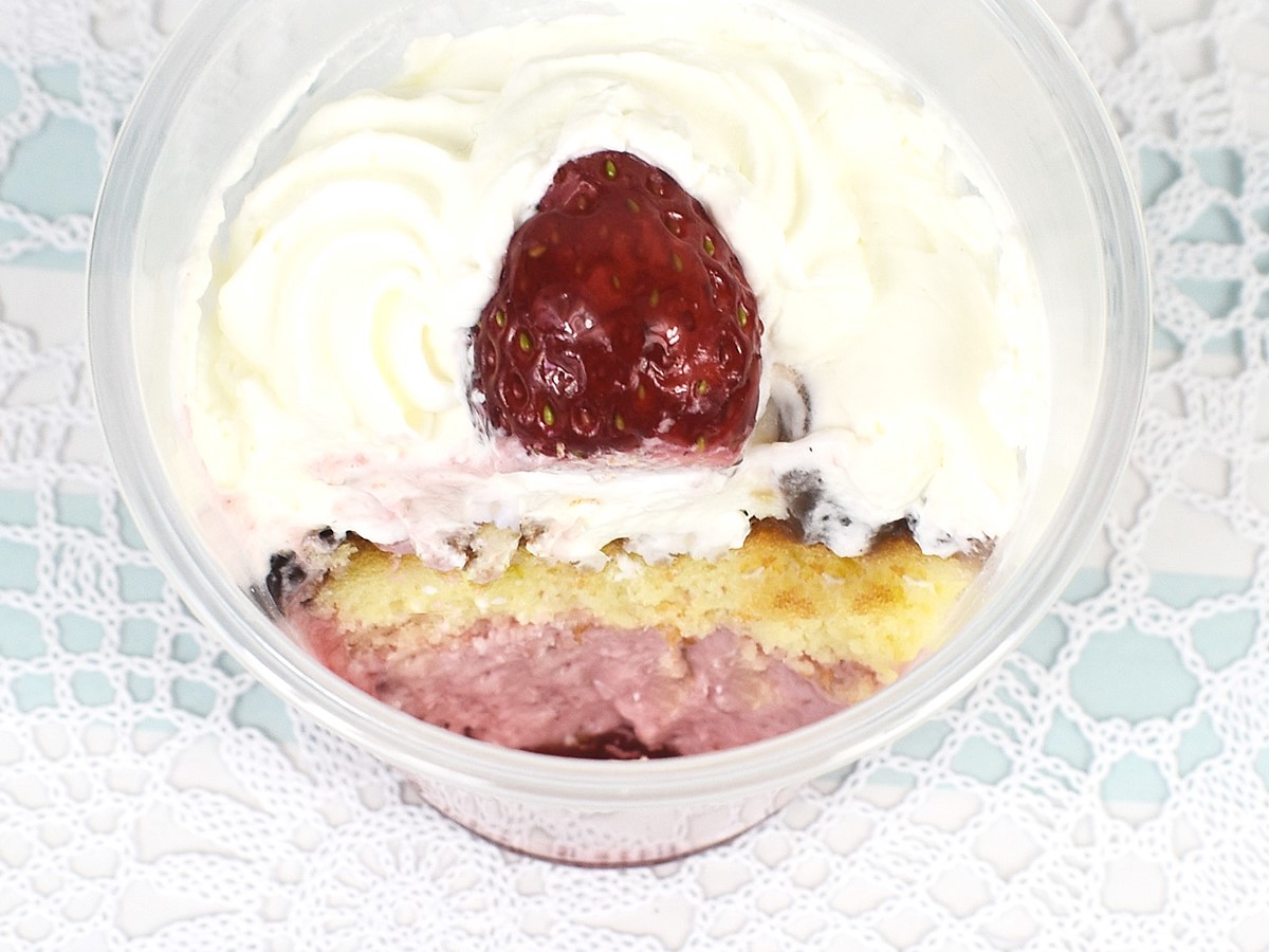 これまで「和パフェ お抹茶」や「和パフェ 白玉きなこ」などのスイーツを生み出してきたローソン。今回のパフェには粒あんがトッピングされて和テイストを演出していますが、定番のいちごを使ってどんな味わいを堪能させてくれるのでしょうか。
