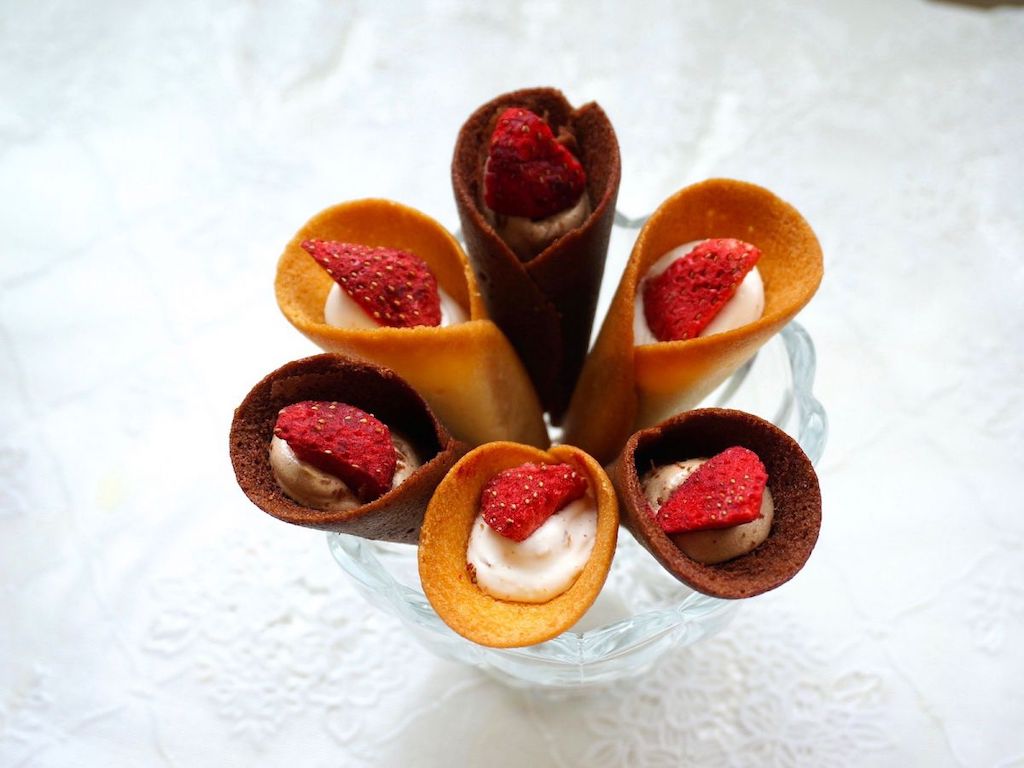 「バターのいとこ」は、バターを作る時にどうしてもできてしまうスキムミルク(無脂肪乳)を有効利用できないか、と考案されたスイーツ。スキムミルクから作られたミルク感たっぷりのジャムを、バターの香り立つゴーフレット生地でサンドイッチしています。
