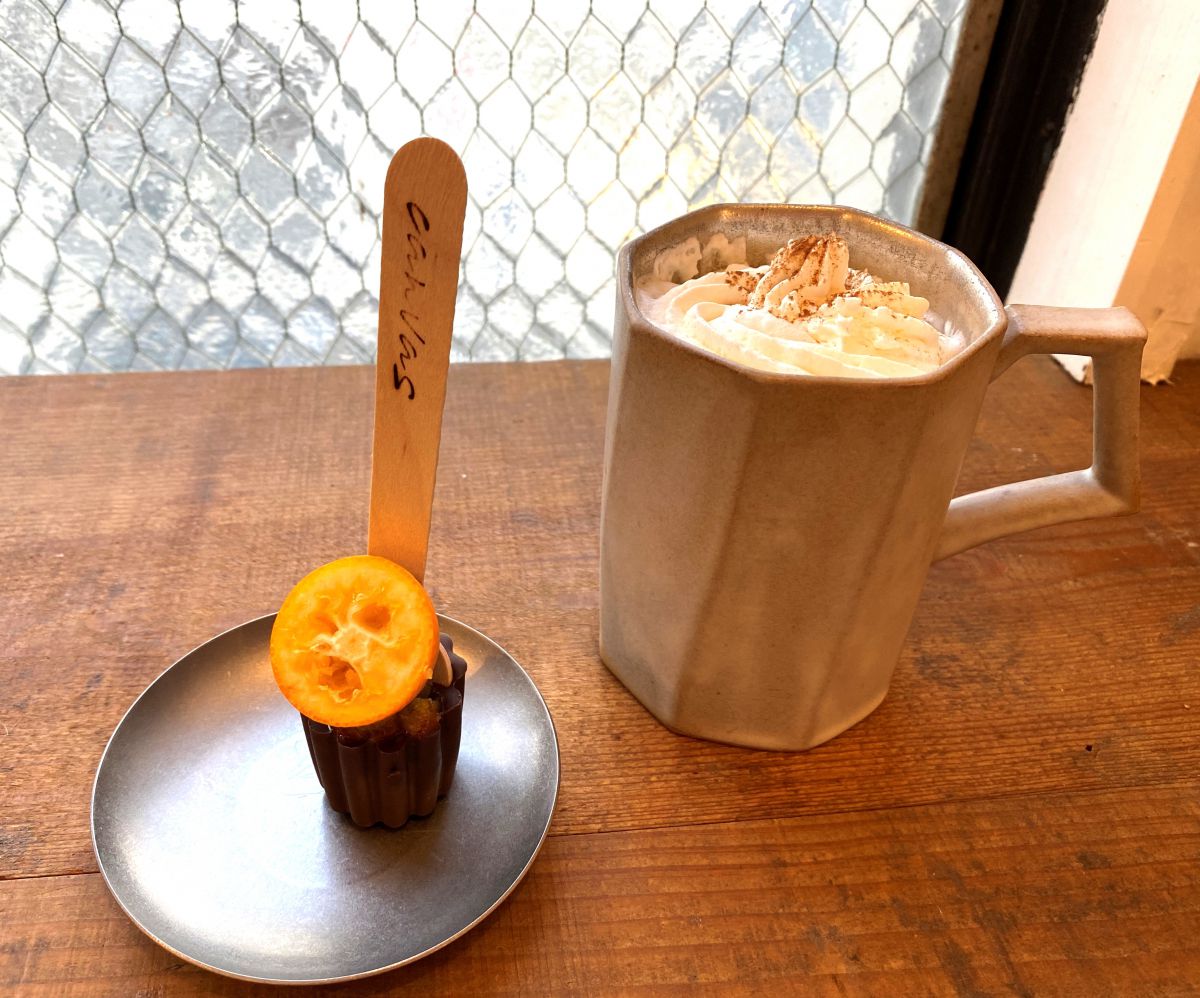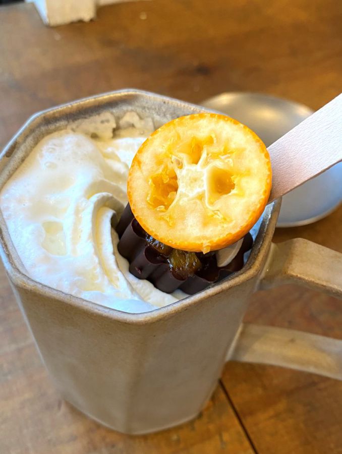 くるくると回してチョコレートを溶かして飲んでみると、チョコレートの甘みがミルクと溶け合ってマイルドになり、金柑の甘酸っぱさと苦みがアクセントに。使われているのは、宮崎県産完熟金柑「たまたまエクセレント」という品種。今の時期しか味わえないドリンクに、体が温まり、ほっとひと息つくことができました。