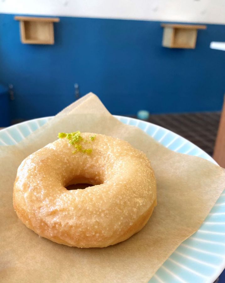 まず紹介するのは、ヴィーガンドーナツ「グリーンレモン」350円。(※2022年2月現在、土・日曜、祝日のみの提供)
