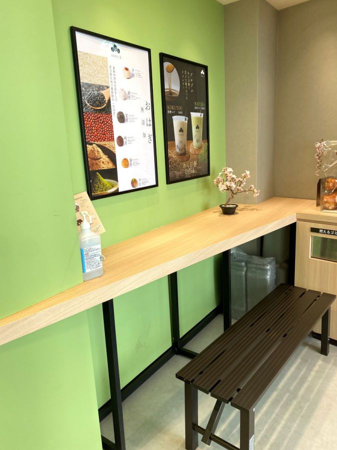 お店の中もカジュアルな内装が印象的。イートインスペースを兼ね備えた新しい形のおはぎ屋さんとなっています。