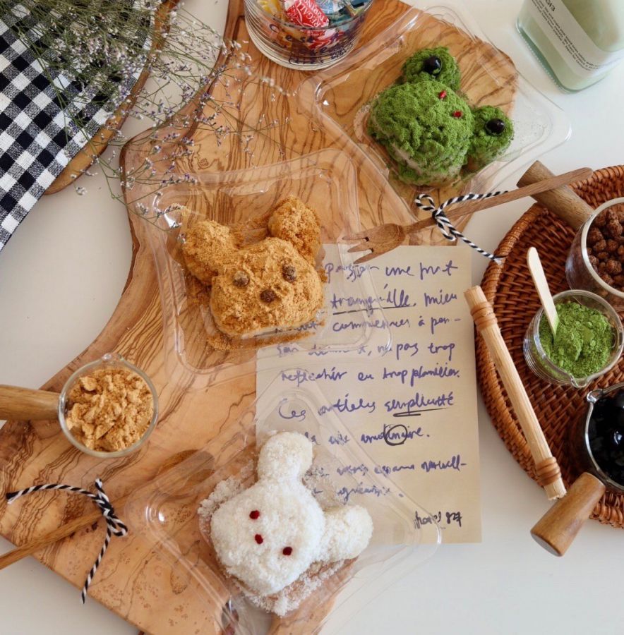 京きなこを使った「クマ」390円は、クマさんの形と素朴な表情が説明不要でかわいすぎる…!ひと口食べてみると、自分が子どものころ食べてきたおはぎと比べて、甘さ控えめでやさしい味わい。一個食べても重たくない、今の時代に合ったおはぎだと感じました。