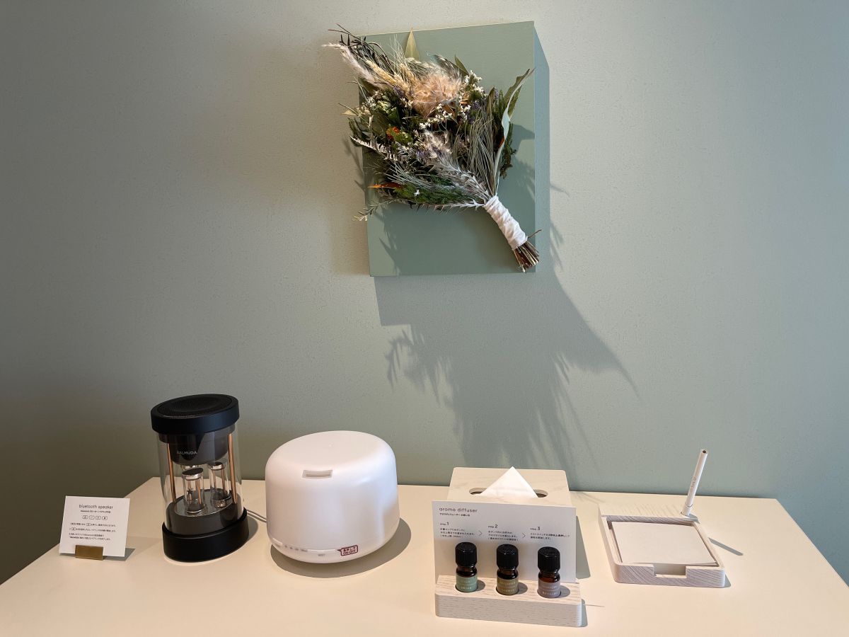 全客室にアロマディフューザーも常設されており、3種類の香りが選べるのもうれしい♪ お気に入りのアロマを持ち込んでもOKだそう。