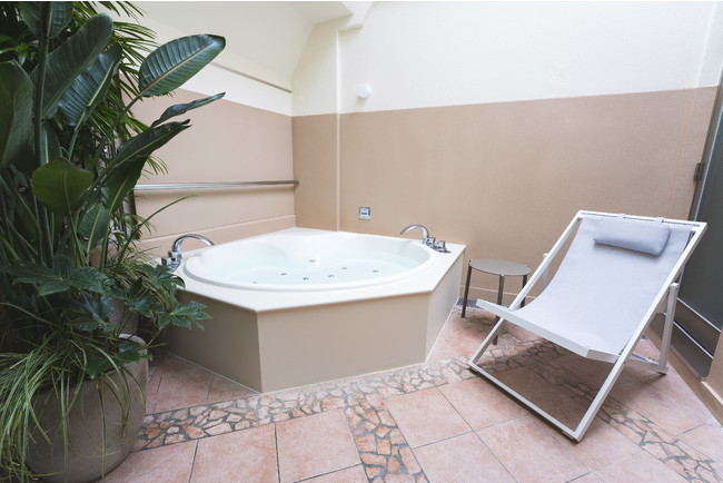 スイートルームと、キャビン(グループルーム)のうち1室にはなんと露天風呂も。都会のど真ん中のおしゃれなホテルで、露天風呂まで楽しめちゃうなんて最高ですね…!