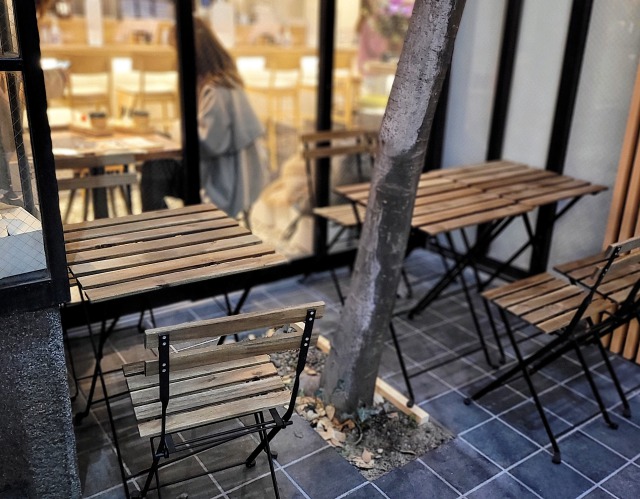 各店舗のイートイン席の他に、共有席やテラス席もあり、横丁らしく楽しくみんなで和める場所になっていて、新しい人気スポットになりそうにゃー♪