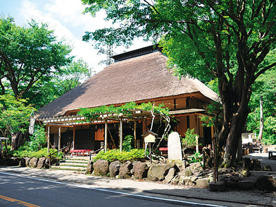 江戸時代初期創業の「甘酒茶屋」は、箱根旧街道散策の一服に利用したい茶屋。茅ぶきの建物は釘を1本も使用せず建てられています。