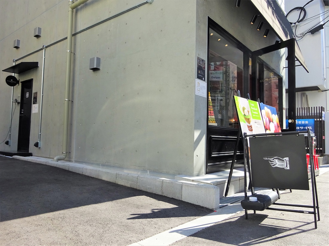 「GLAMOURDISE 靭公園店」は、カフェスペースを備えることも注目される理由。ショップ正面のカウンターで先にオーダーと支払いを済ませて、店の左手奥にあるドアからカフェスペースに入店します。