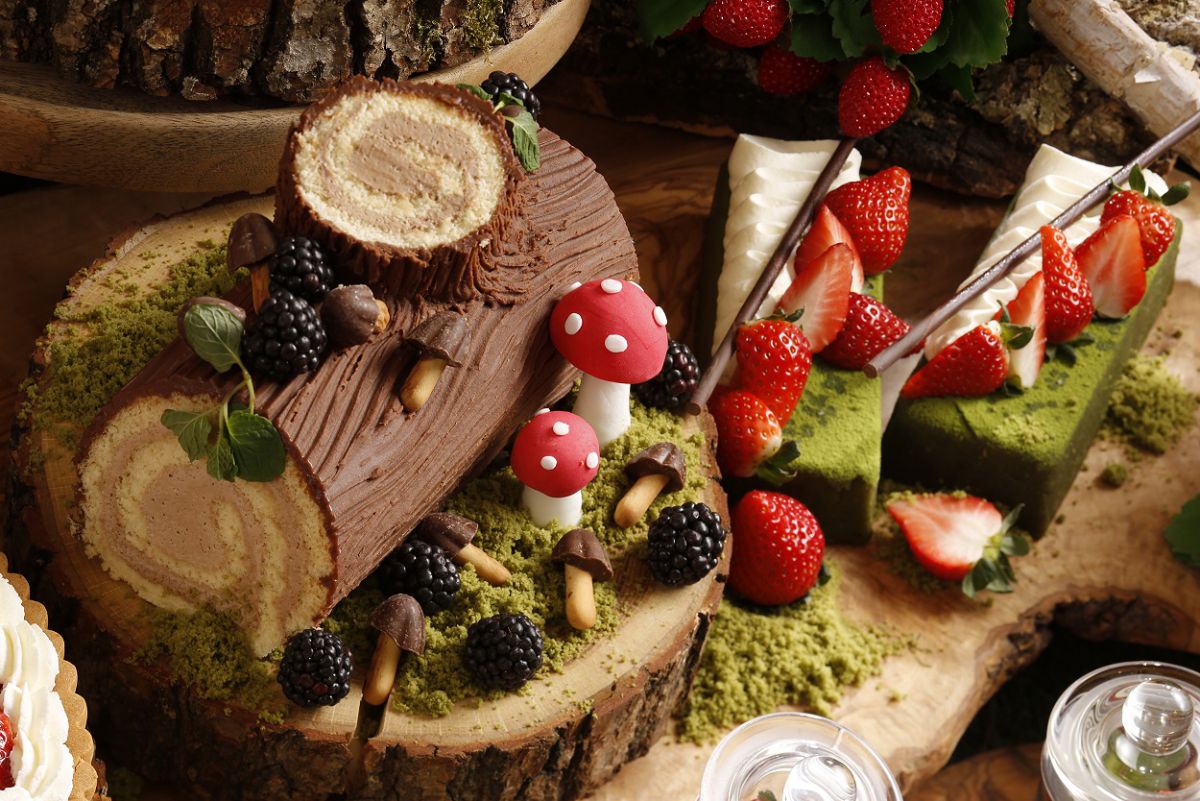 テーマは“森のスイーツパーティ”。生い茂る木々の緑や丸太などの装飾をあしらった特別気分で盛り上がるテーブルコーディネートで、バーテンダー提案のウェルカムドリンクと一緒にスイーツブッフェが楽しめます。
