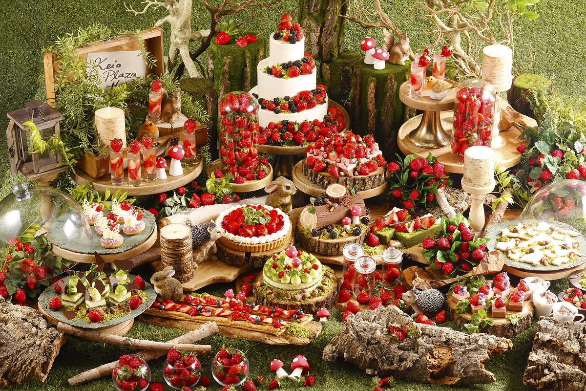 コラボスイーツのほかにも、抹茶のティラミスの丘やモンブランで、まるで箱庭のように森のワンシーンをグラスの中で表現したテラリウムスイーツをはじめ、切り株をイメージしたチョコロールケーキ、抹茶のクランブルで森を連想させる抹茶のティラミスなど、森がテーマのかわいらしいイチゴスイーツが心ゆくまで楽しめます。