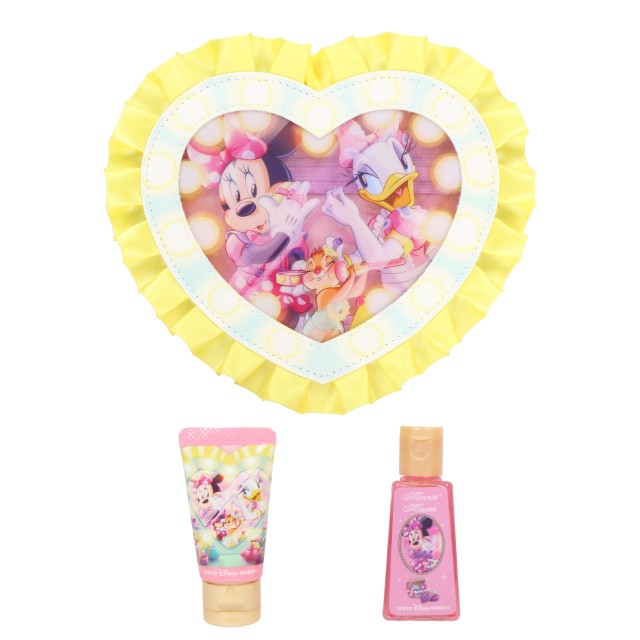 カバンに忍ばせておきたい、ハンドケアアイテムがセットに。ピーチの香りのハンドクリームとハンドジェルがハート形のポーチにイン。ポーチは裏面にファスナーがついていて使い勝手も◎。