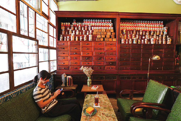 ノスタルジックな街並みが残る迪化街の人気カフェ。もともと貿易会社があった住居兼オフィスビルを改装しており、土台はそのままに、周辺エリアのレトロムードに合わせた雰囲気に仕上がっています。