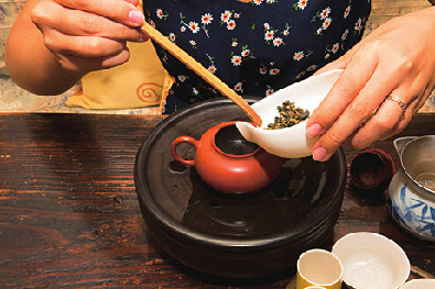 台湾茶をいただける茶藝館では、店員さんが伝統的な作法や茶器でお茶を淹れてくれます。茶壷(急須)や茶海(茶壷からお茶を注ぎ淹れるピッチャー)、茶杯(湯呑み)に聞香杯(香りをかぐ器)など、さまざまな茶器を使ってお茶を嗜む「工夫茶」が一般的です。