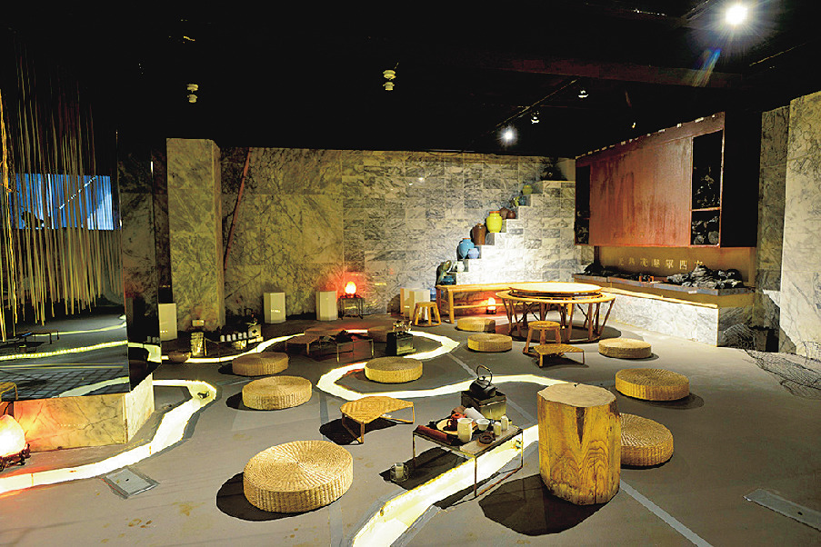 土足厳禁の地下に広がるのは、まるでアートのような幻想的な世界。それもそのはずオーナーの本職はインテリアデザイナー。伝統的な茶藝館とは一線を画すインテリアデザインで、こだわりの空間が広がっています。