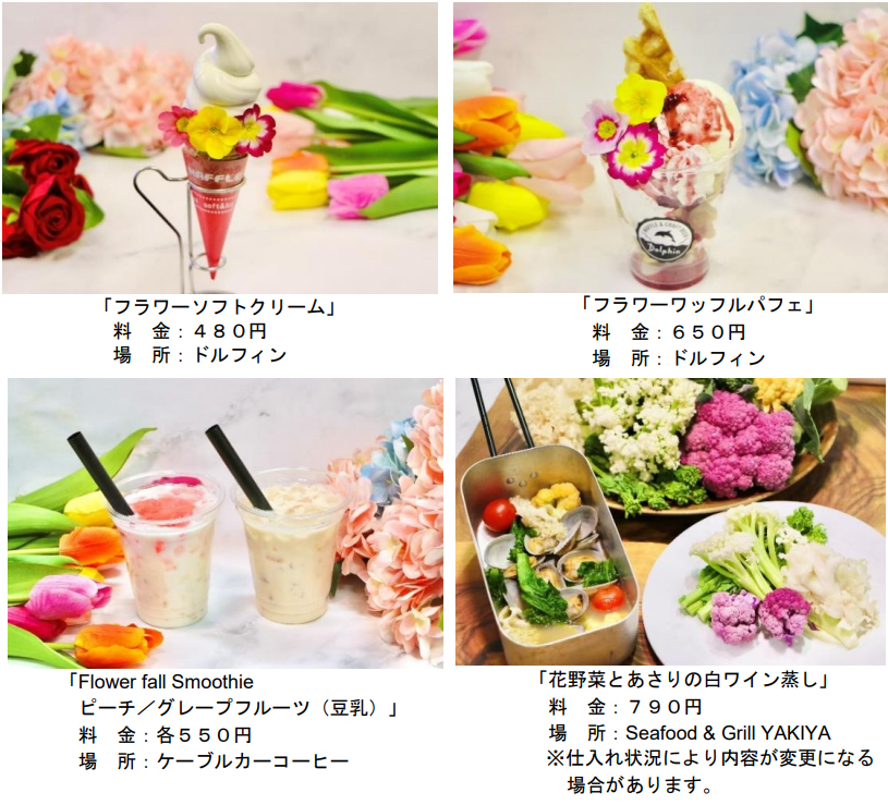 「#はなパラ」の期間中、施設内のレストランや軽飲食店舗では、花を使ったスイーツやフードメニューが用意されています。