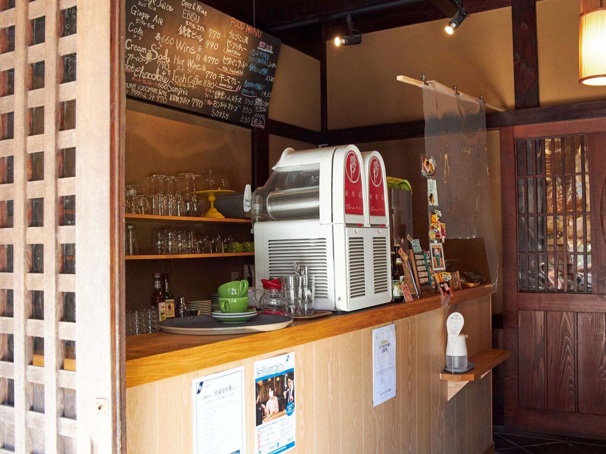 駅から歩いてすぐなのに、なんだか昔ばなしに出てきそうなこのたたずまい。もともとおそば屋さんの建物だったそうで、それをリノベーションして現在のスタイルに。入口の木連格子戸などは当時の名残なのだそう。
