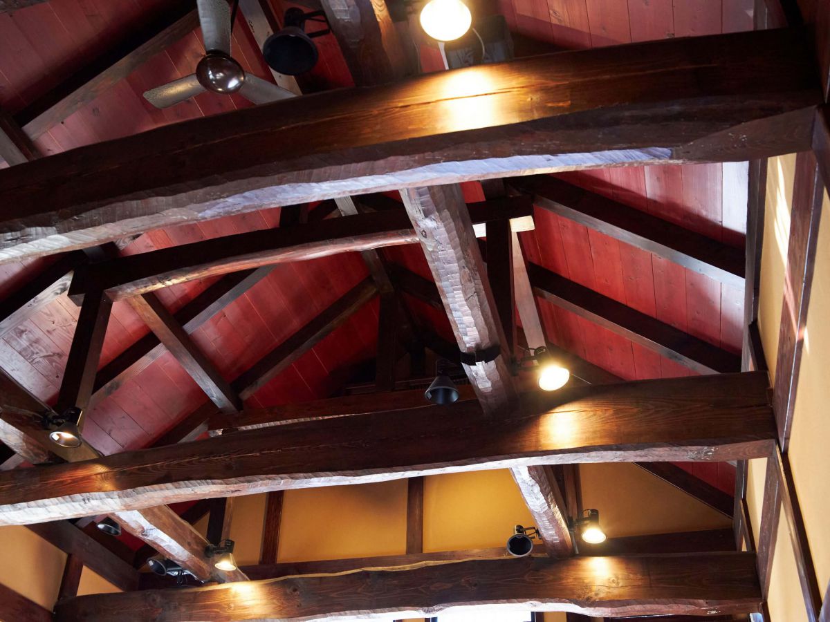 2階は古民家の落ち着いた雰囲気と和と洋が融合するモダンなフロア。開放感&見事な梁もポイントのひとつです。