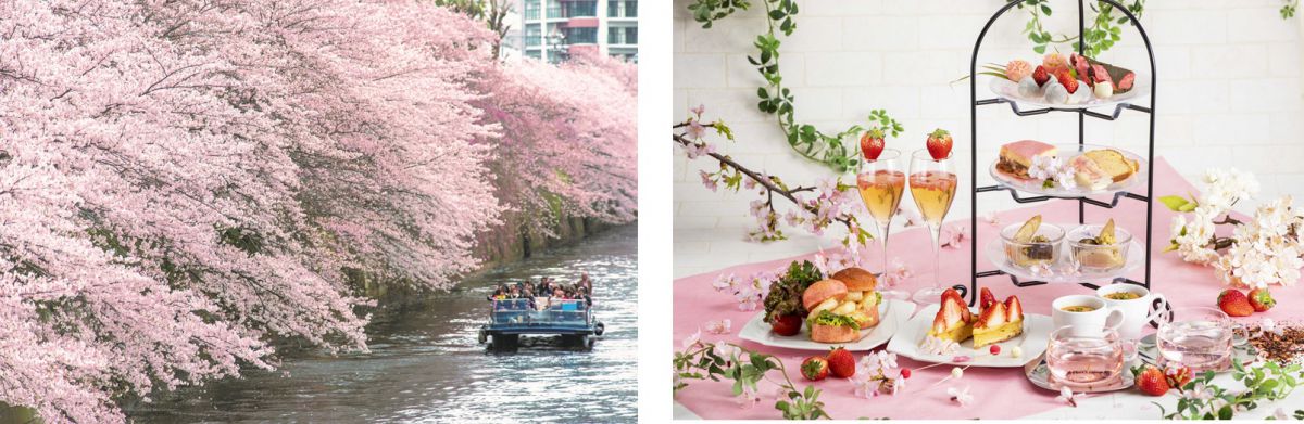 東京で人気のお花見スポット目黒川で「お花見クルーズ」と「桜×イチゴアフタヌーンティー」が同時開催