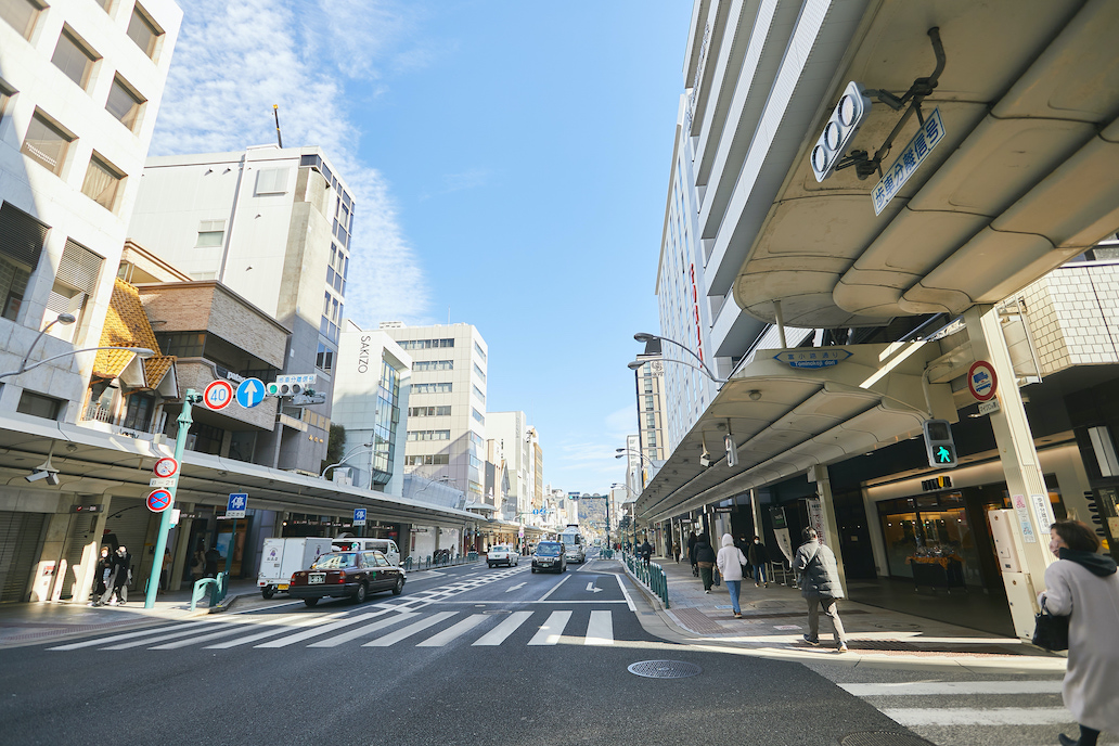河原町からオフィス街の烏丸へと続く四条通は、京都きっての繁華街。建物に高さ制限があり、屋外広告物も制限させているので、繁華街ながらゆったりとした街並み。