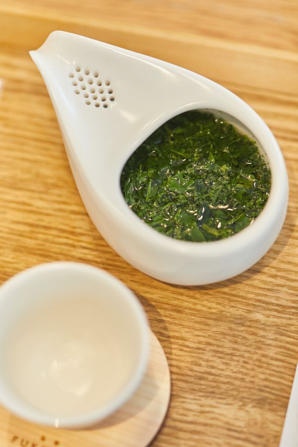 ツウは、お湯を注いだときの茶葉の色、葉っぱの広がりを楽しむそう。湯気とともに広がる煎茶の清涼感ある香りがたまりません。