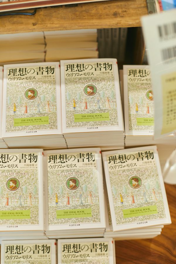 入り口を開けてすぐの場所に平積みされているのが、ウィリアムモリス著の「理想の書物」。堀川新文化ビルヂング店をオープンする際のコンセプトとなったのが、この本の「書を、美術品として価値を置く」という価値観。デザイナーで詩人でもあるウィリアムモリスのこの本を、オープンに伴い限定復刊しています。
