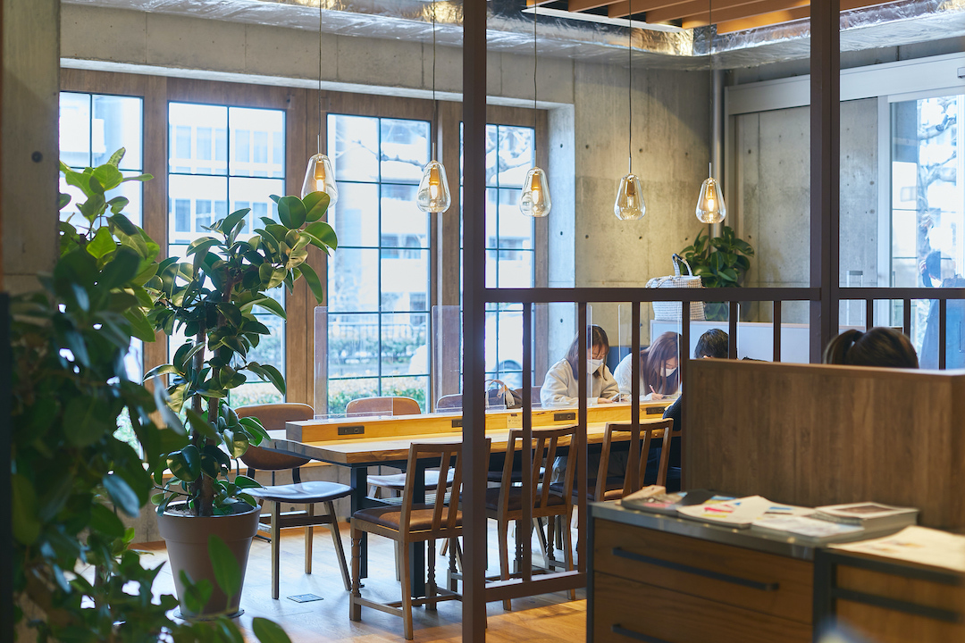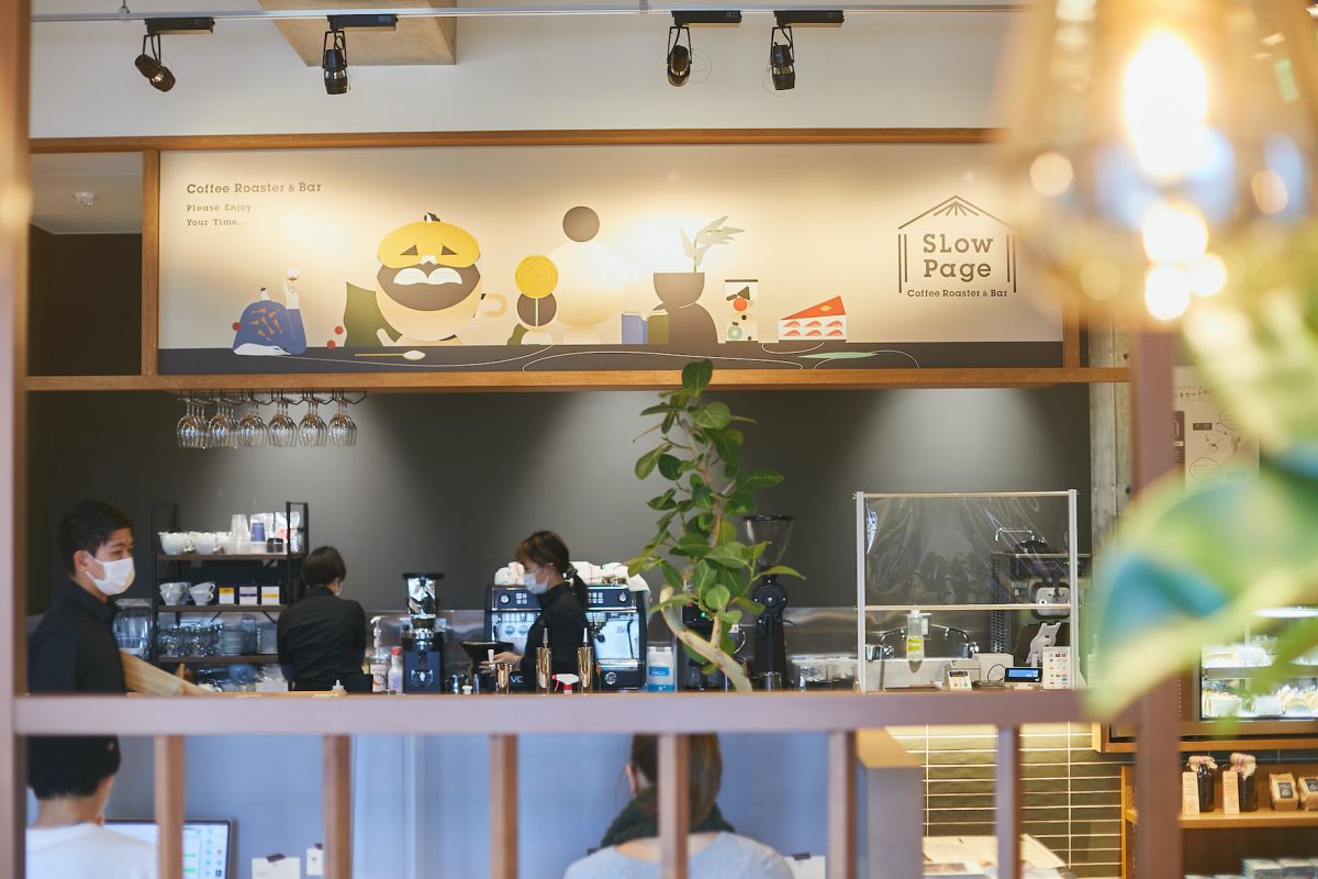 併設のカフェ「Slow Page(読みかた記載をお願いします)」。さすが本屋さんのカフェだけあって、一人で本を読みながらくつろげるカウンター席も充実。