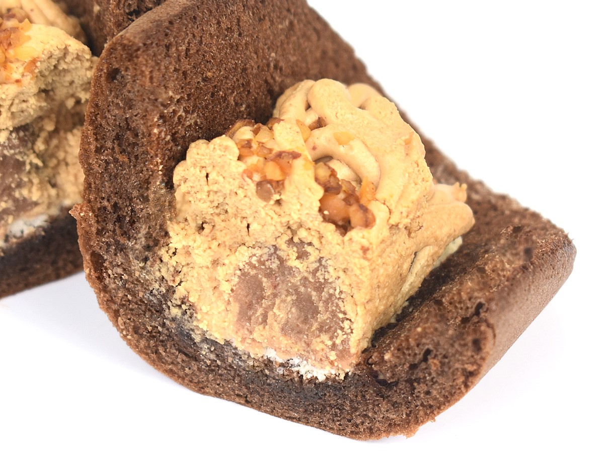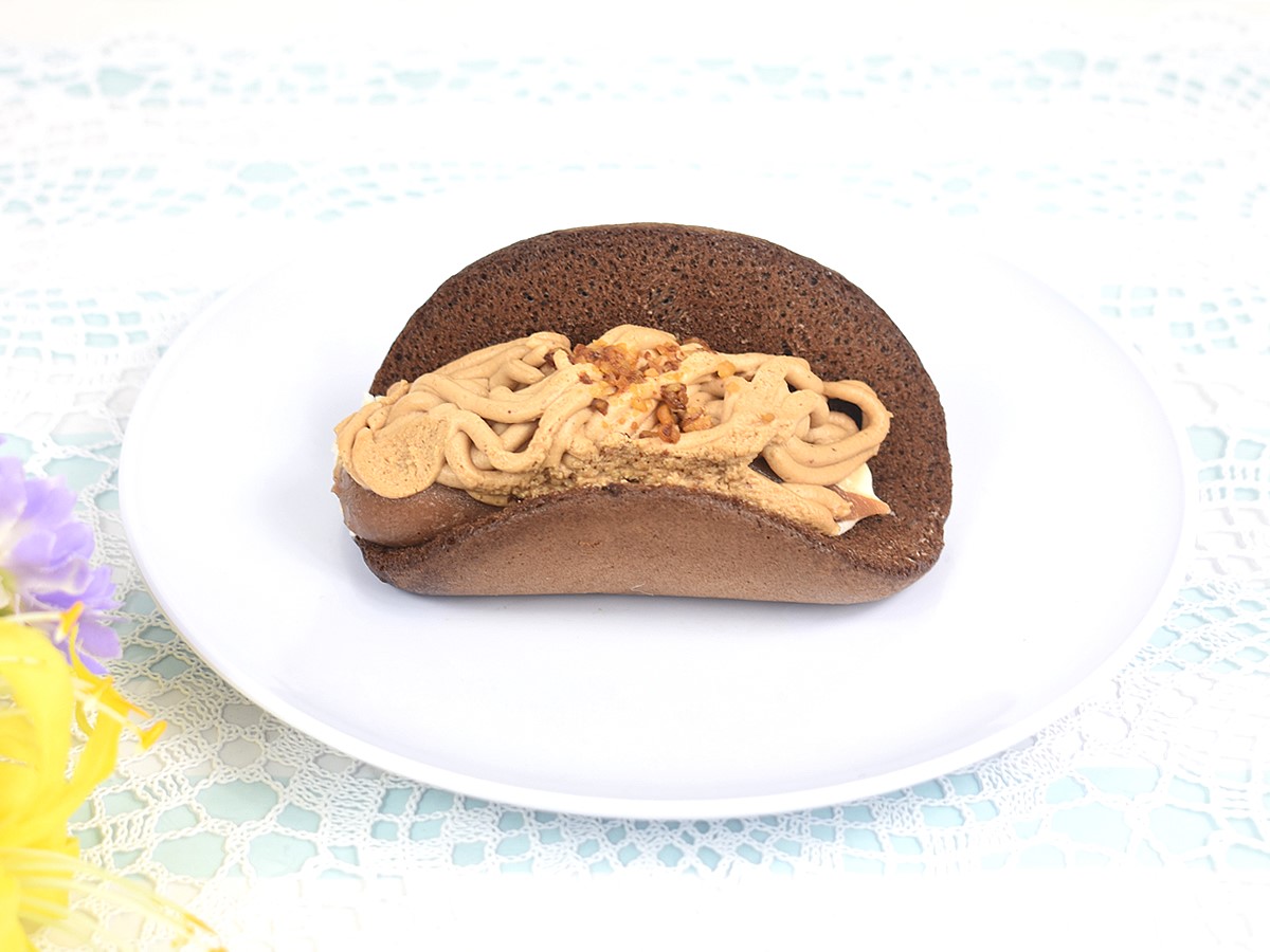 今回、新フレーバーとして加わったモンブランは、ココアオムレット生地にマロンペースト、モンブランクリームなどがサンドされています。オムレットを手にした瞬間からそのふわふわとした柔らかさを感じ、1口食べると驚くほどソフトな食感のとりこに! じんわりと口の中に広がりつつ、しっかり後を引くココアの優しい味わいもたまりません。