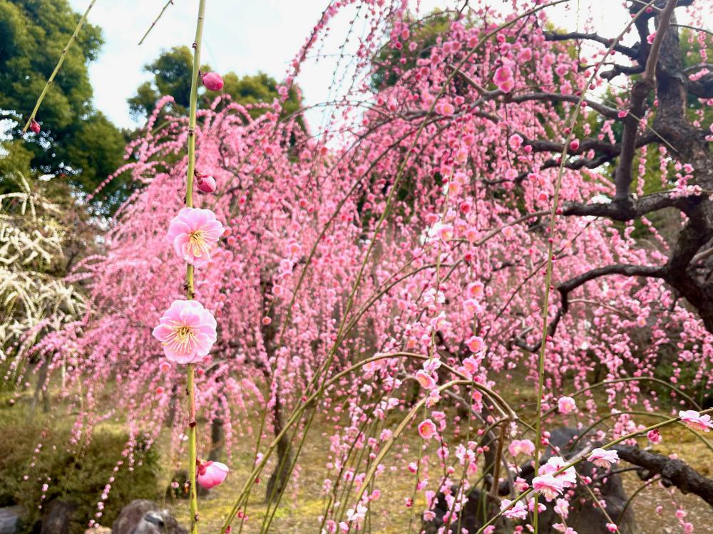 満開の梅が楽しめる「観梅」には、しだれ梅が豪華絢爛な景色を見せてくれます。「春の山」の入口あたりは見応えがあります。一度は圧巻の景色を拝んでみたいですよね。
