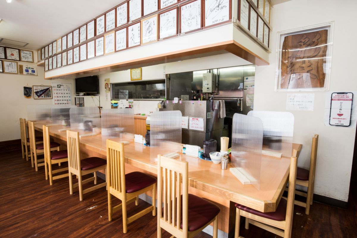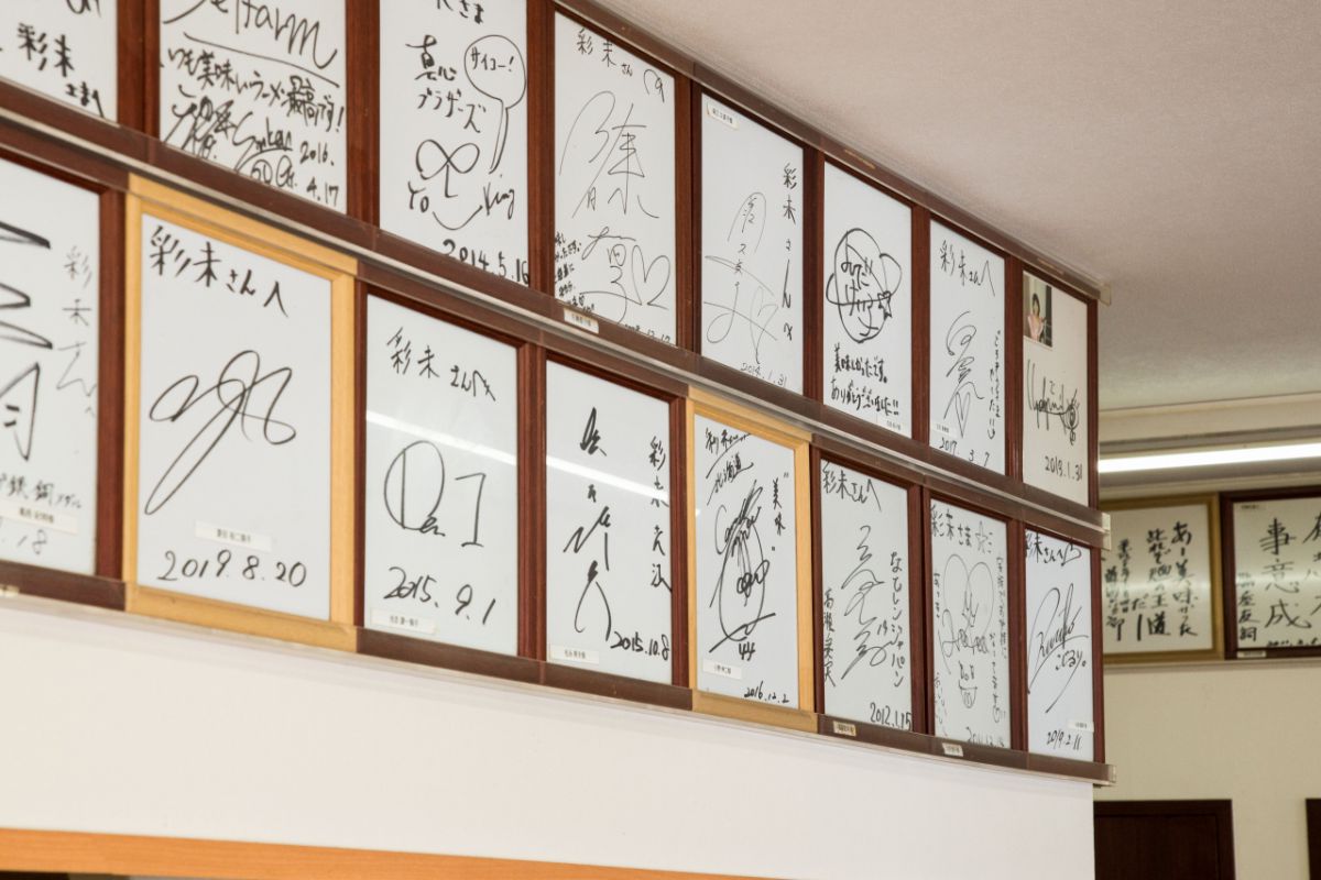 カウンターの上や壁には、彩未のラーメンに魅了された有名人のサインがびっしり! 人気の高さがうかがい知れます。