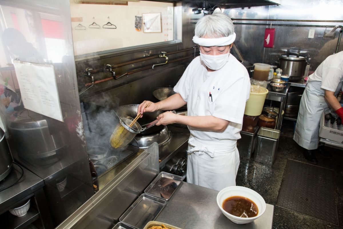 オーダーが入るとラードとともに野菜を炒め、さらにスープを加えて一杯一杯火入れするのが札幌ラーメンのスタイル。これは“あおり”と呼ばれる手法で、こうすることでスープに香ばしさが加わるのです。