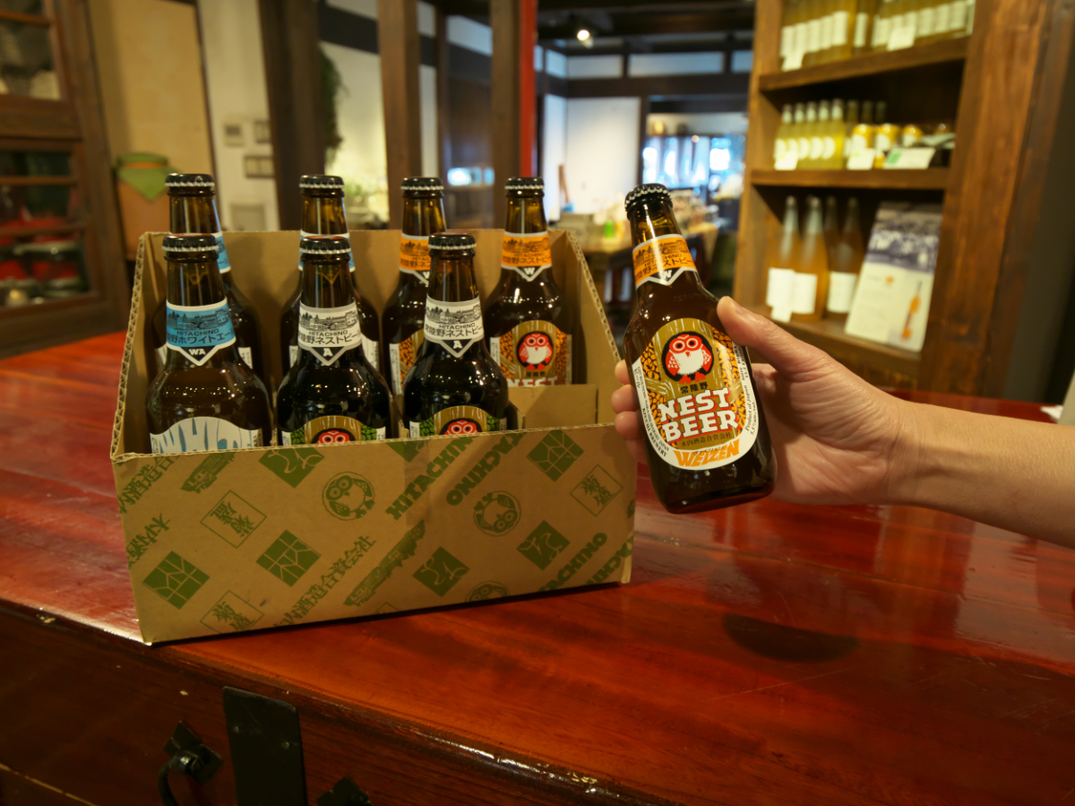 ランチが終わったら本店でショッピングを楽しみましょう。店内には、木内酒造が手がけるお酒がズラリ勢揃い。このほか、クラフトビールのロゴをあしらったビアグラスやバッグ、Tシャツなどのオリジナルグッズも販売しています。店の奥には気軽に飲み比べができる利き酒カウンターもあるので、ここでお気に入りのお酒を見つけてみては?