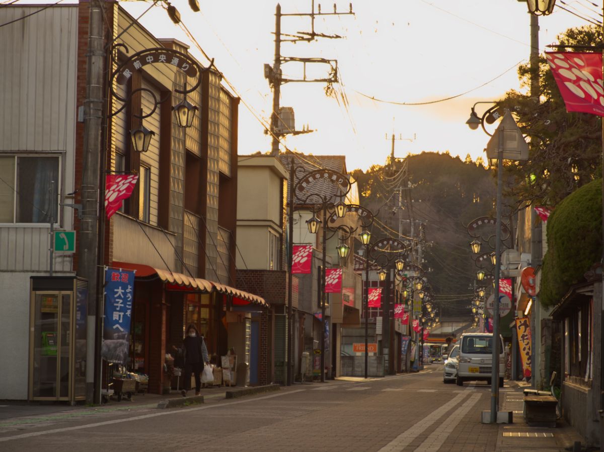 お腹が満足したところで大子町を散策です。daigo caféが店を構える大子町中心商店街は、昔ながらの建物が残るノスタルジックな町並みが魅力。ここは通称「大子デパート」と呼ばれ、子どもの頃にデパートで感じたようなドキドキ&ワクワクさせる町づくりが行われています。商店街を歩くと、創業100年以上の老舗和菓子店やご当地スーパーのほか、古民家を利用したカフェや雑貨店など新旧のお店がバランスよく調和していて、昭和レトロな空間にタイムスリップ! お店巡りはもちろん、路地裏散策もおすすめです。