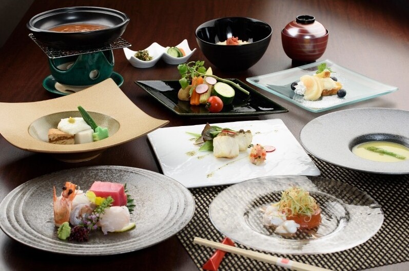 宿のコンセプトは“里山のオーベルジュ”。夕食では、地元・大子町をはじめ茨城県産の旬の食材をふんだんに盛り込んだ創作和食を堪能できます。前菜、椀物、お造りから始まり、野菜料理、 魚料理、肉料理へと続く全10品のお料理は、いずれも季節感にあふれていて滋味豊か。器や盛り付けも美しく、目と舌で茨城の自然の恵みを存分に堪能できます。
