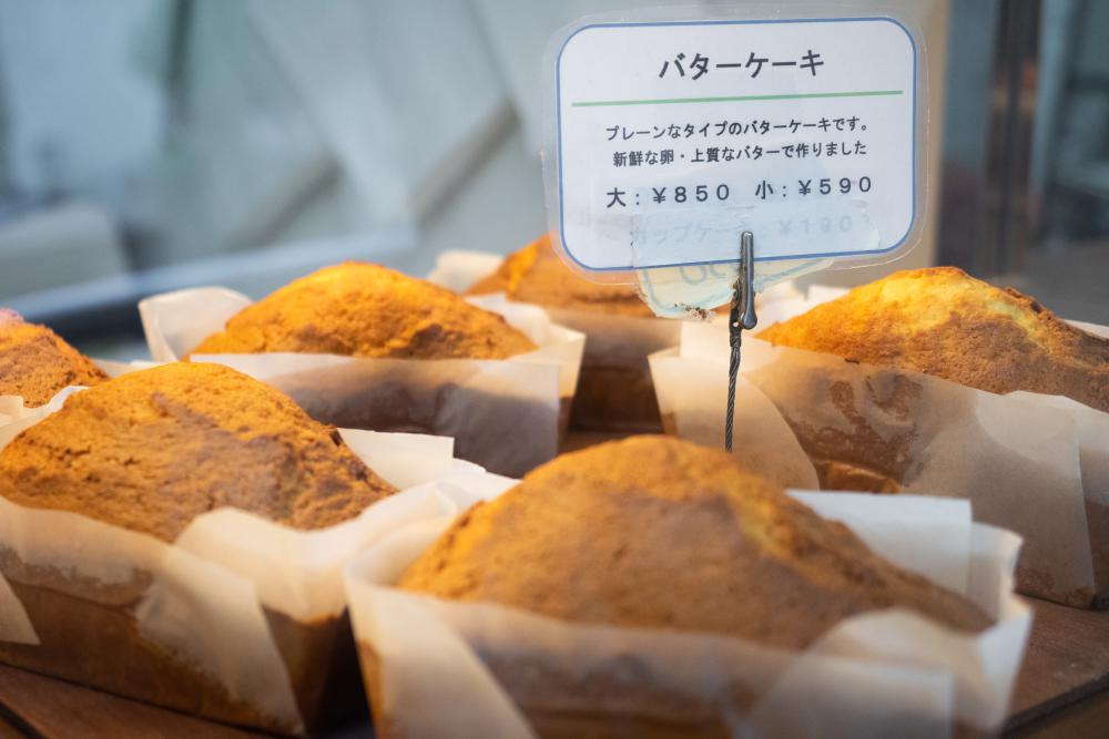 同じレンガ窯で作るバターケーキ大850円・小590円も、しっとりとした食感とバターの豊かな風味がたまらない、人気の逸品。優雅なおやつタイムにぴったり!手土産にも喜ばれますよ。