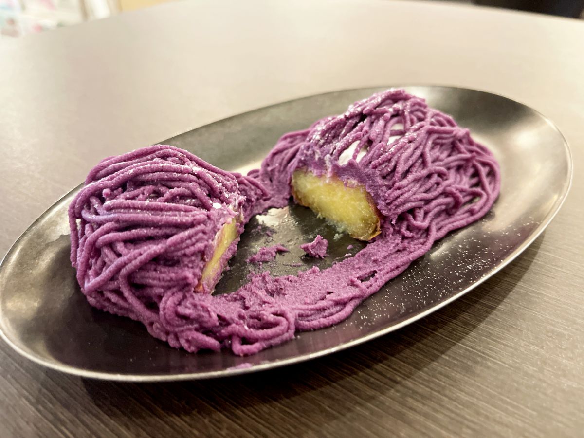 取材時(3月)に食べたのは、紫芋「パープルスイート」のクリームを使ったメニューで、鮮やかな紫色がとっても映えます♪