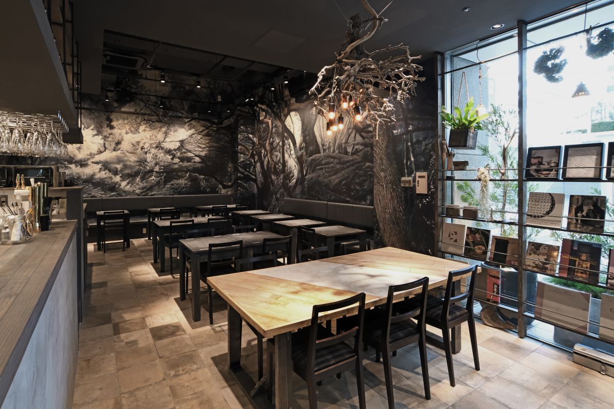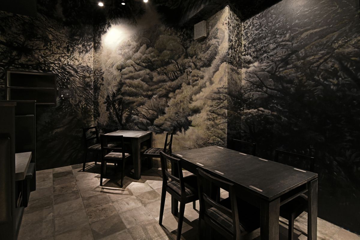 コロナ禍で、自然に触れる機会が多くなった壁画アーティストでもある代表が「都心にいながらも自然のなかで食事をする雰囲気を楽しんでほしい」と、1カ月の期間をかけて描き上げた壮大な作品です!