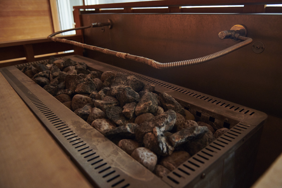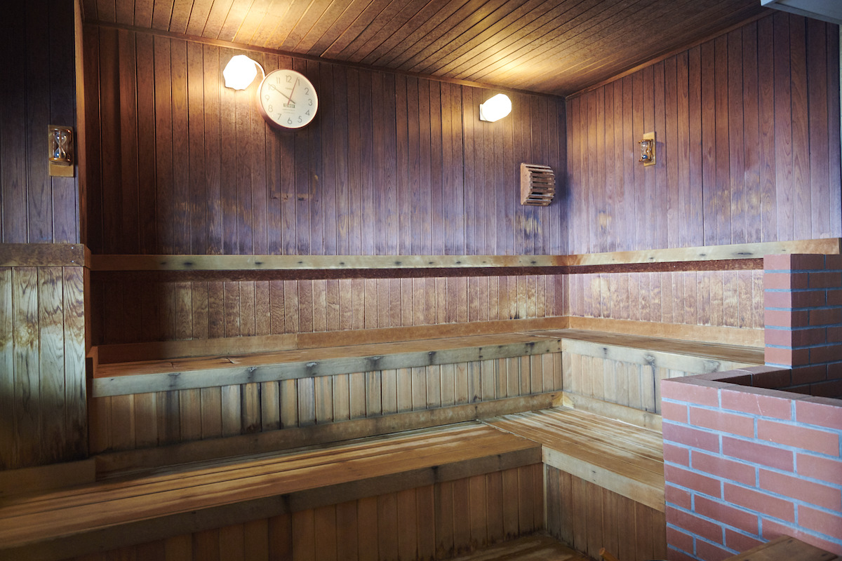 「星の湯」のサウナはクラシックな雰囲気で、90℃と「星の湯」よりも高めの設定。熱したサウナストーンにみずから水を注いで蒸気を発生させるセルフロウリュが可能なので、好みの温度や湿度で蒸されましょう。