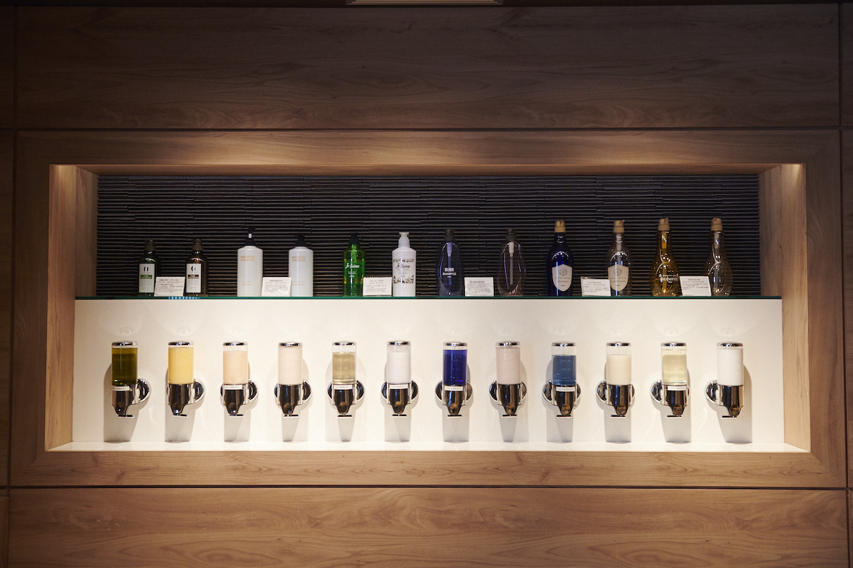 「月の湯」が地下1階にある一方、最上階の8階にあるのが「星の湯」です。入口にはシャンプーバーを設置。10種類以上ものシャンプー・コンディショナーから好きなものが選べるのも、入浴時にはうれしいポイントです。