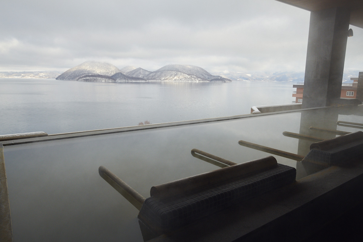 そして露天風呂に出れば、美しい洞爺湖の景色が一望!寝そべり湯や壺湯に浸かれば、浴槽の水面が湖と一体化したインフィニティ風呂になるからたまりません。絶景は太陽光とともに刻々と表情を変えるので、時間帯の変化とともに楽しんでみてはいかがでしょうか。