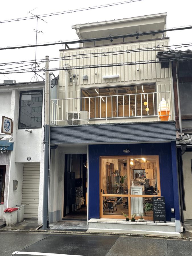 「chichi」があるのは、阪急電鉄京都河原町駅からも烏丸駅からも徒歩約5~6分の場所。綾小路富小路交差点からすぐで、1階の外壁が青い美容室と、2階のベランダにある大きなソフトクリームが目印です。